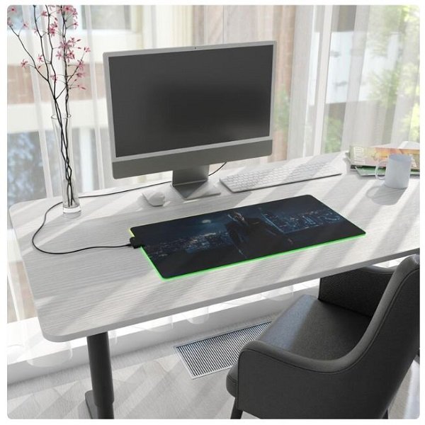 A luminous mouse pad designed for those who love style, strategy, and controlled action, whether for gaming or work.