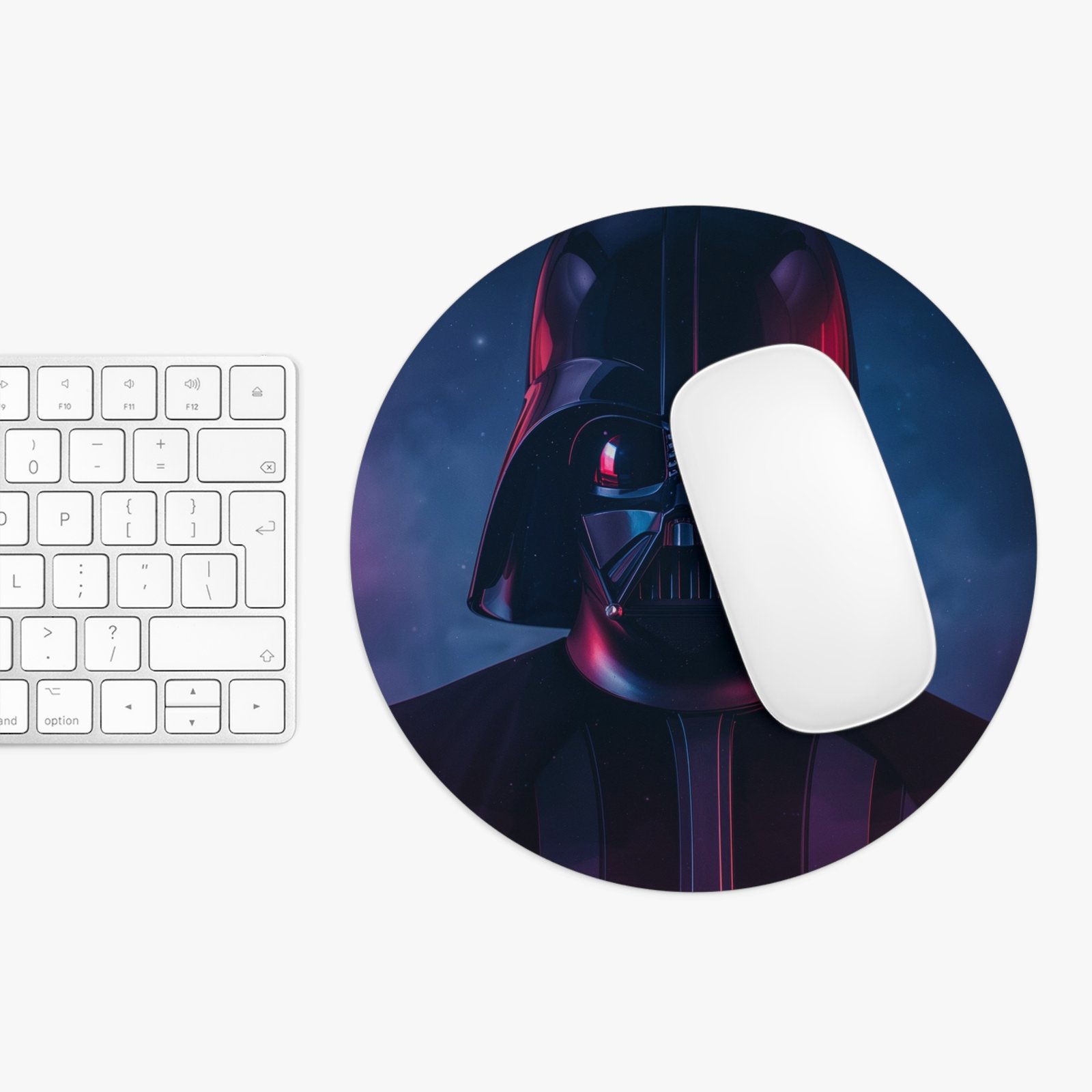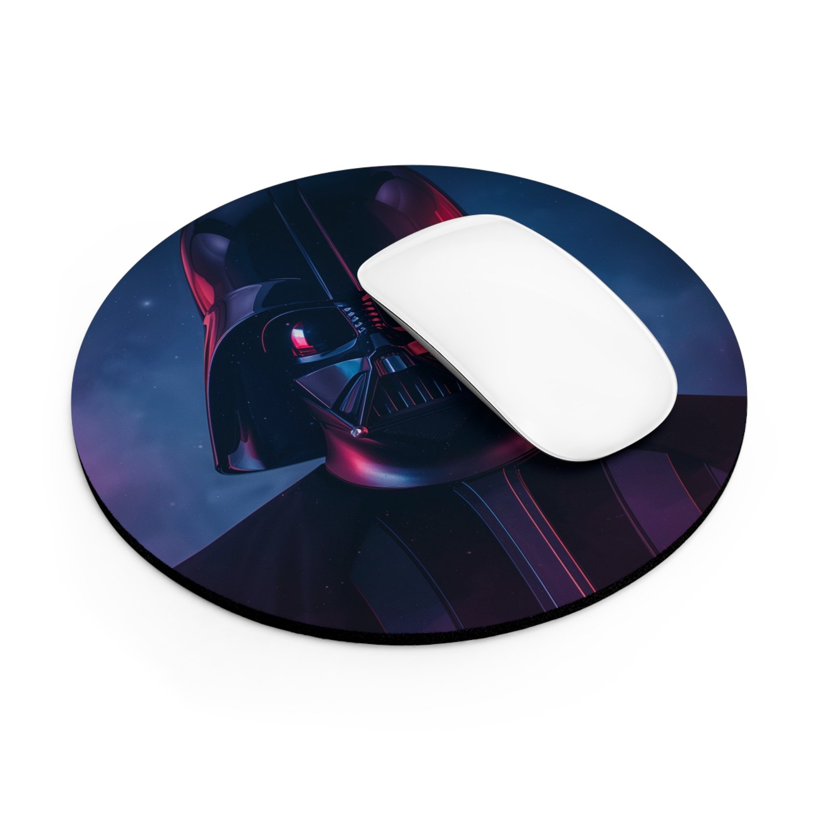 This round neoprene mouse pad brings cinematic sci-fi energy to your desk. A dark, glossy helmet sits center stage under cool blue and magenta lighting, creating a dramatic, atmospheric scene that lifts late-night work sessions and gaming marathons. The low-profile 1/4″ thickness gives a comfortable wrist surface while keeping your setup sleek. The printed top has sharp, vibrant colors that hold up through daily use. With a non-slip rubber backing, the pad stays planted during quick mouse moves so you can focus on precision and flow. Choose the round shape to make the helmet artwork the focal point of your workspace.