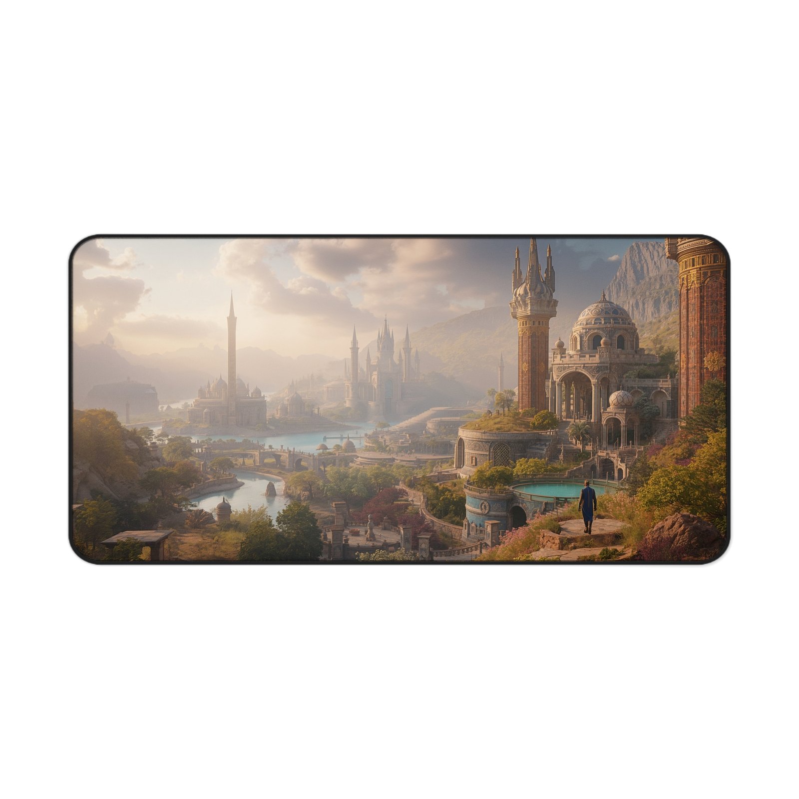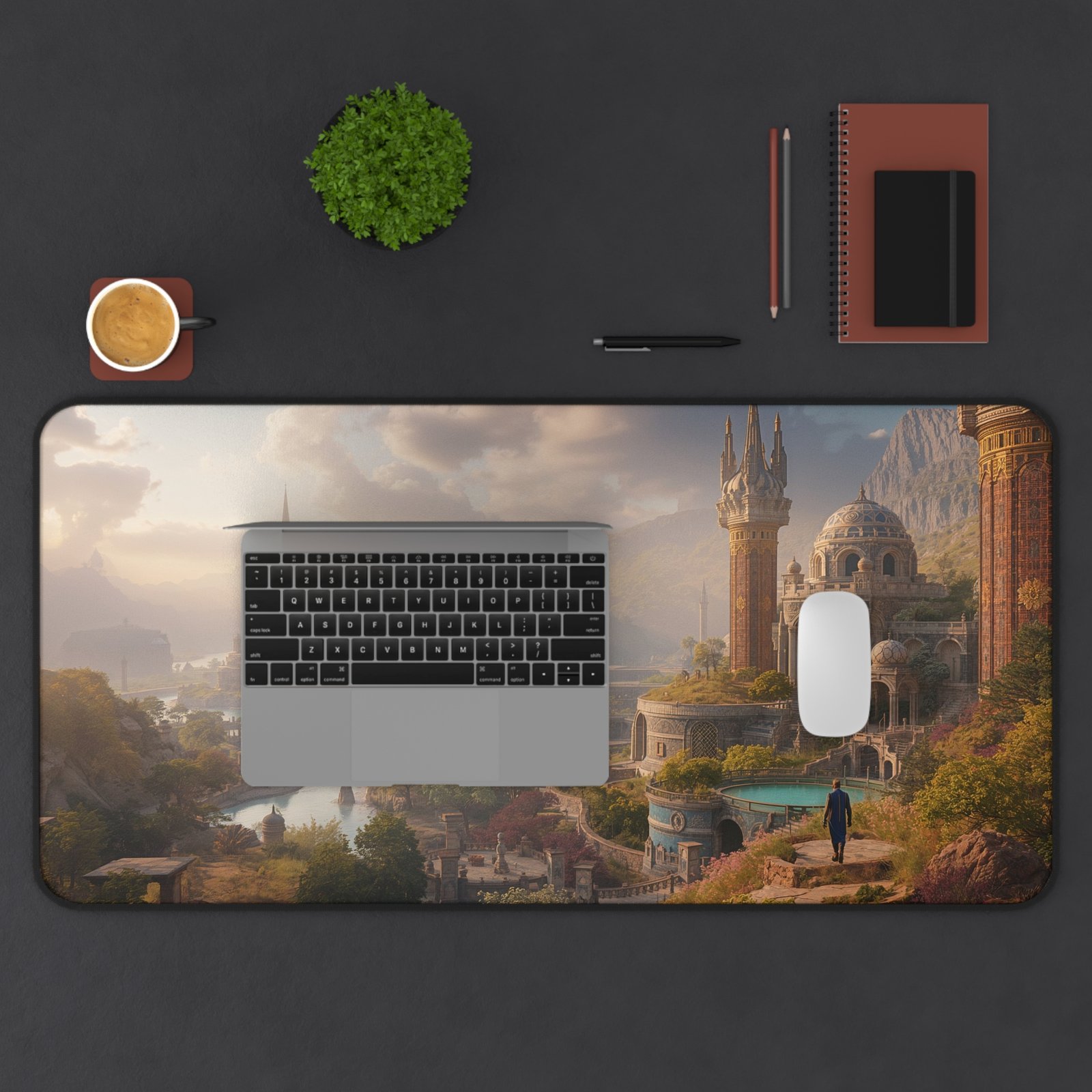 Transform your desk into a portal to the unknown with our XXL “Fantasy City Planet” Desk Mat. This unique design blends the grandiose architecture of an imaginary city with the mystical beauty of a distant planet. It’s the perfect centerpiece for any setup that aims to be inspiring and out of the ordinary.