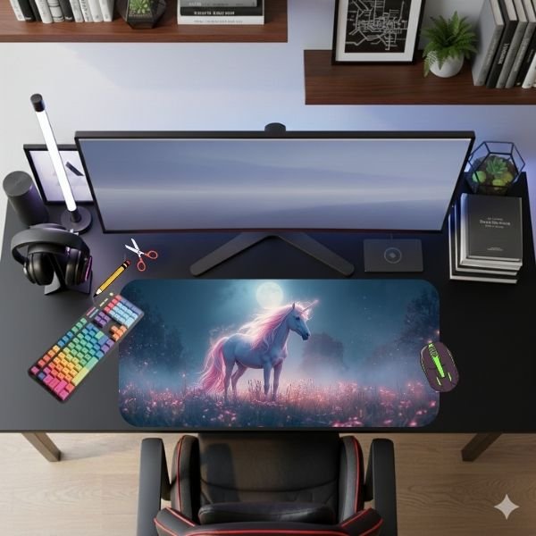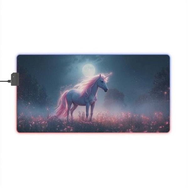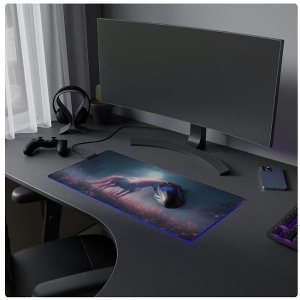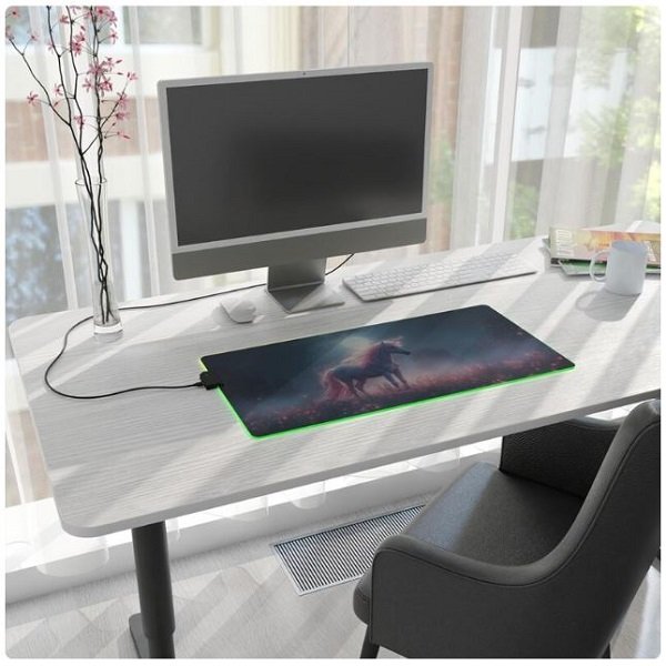 The LED Mouse Pad – Mystic Unicorn model captures the grace and purity of a mythical creature that symbolizes light, freedom, and boundless dreams.
