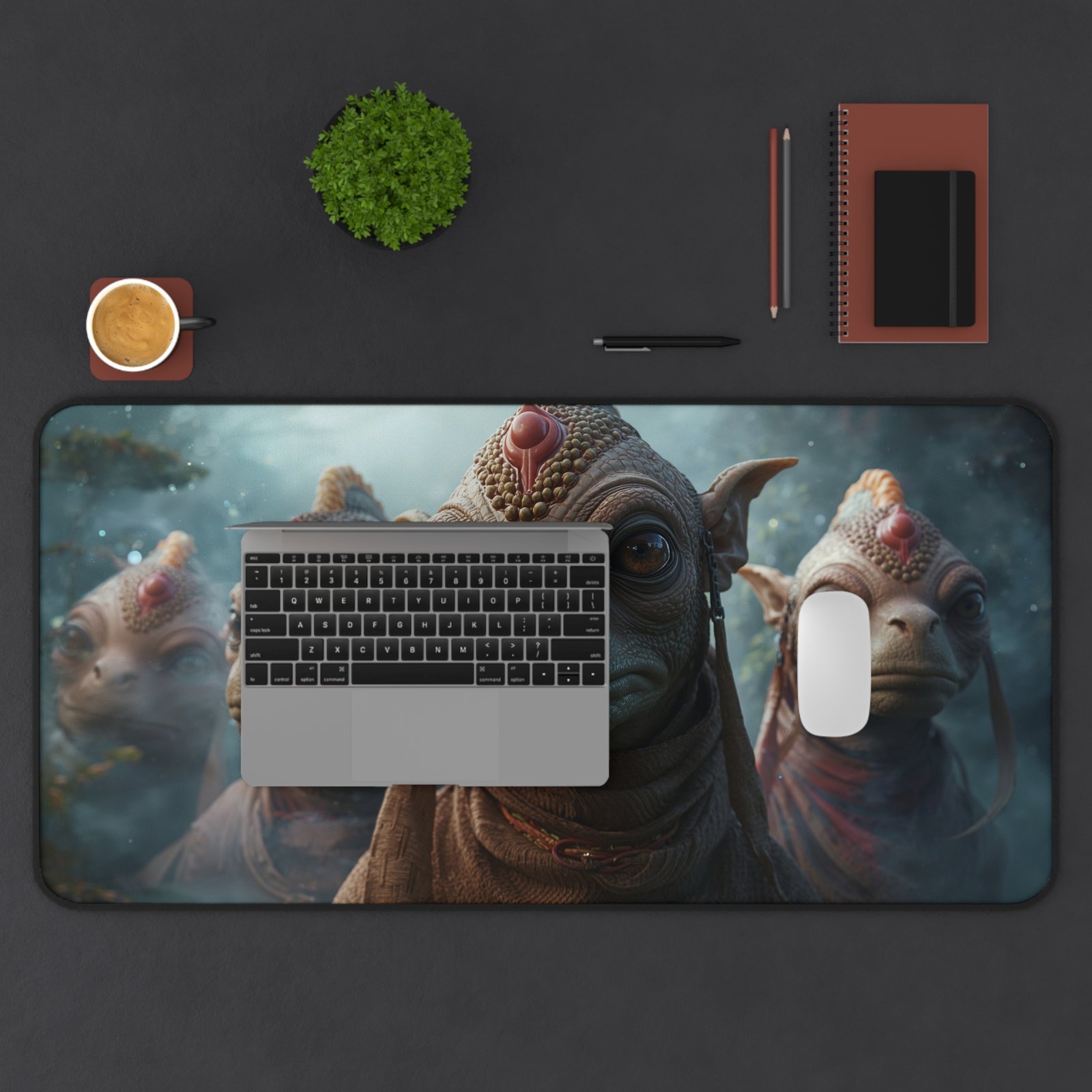 Add a touch of color and originality to your setup with our XXL Gungan-themed Desk Mat. This unique pad captures the beauty of the planet Naboo and the ingenuity of the Gungans’ underwater cities.