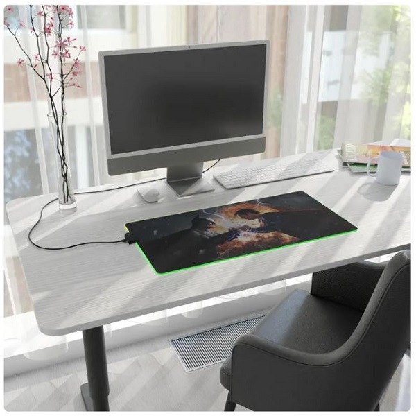 Between light and power, this pad transforms your desk into an energetic battlefield, ideal for gamers, movie enthusiasts, and fans of spectacular setups.