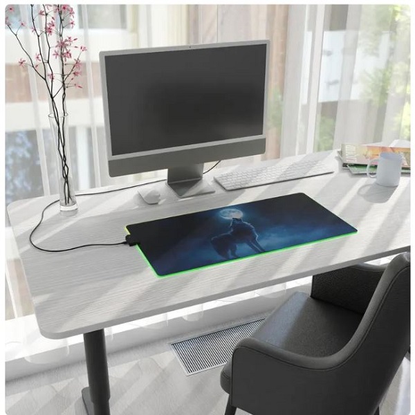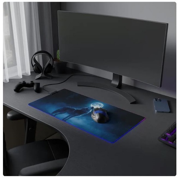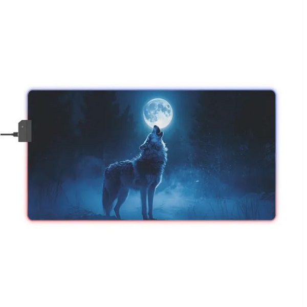 The LED Mouse Pad – Moon Wolf model captures the majesty and power of the wolf under the moonlight.