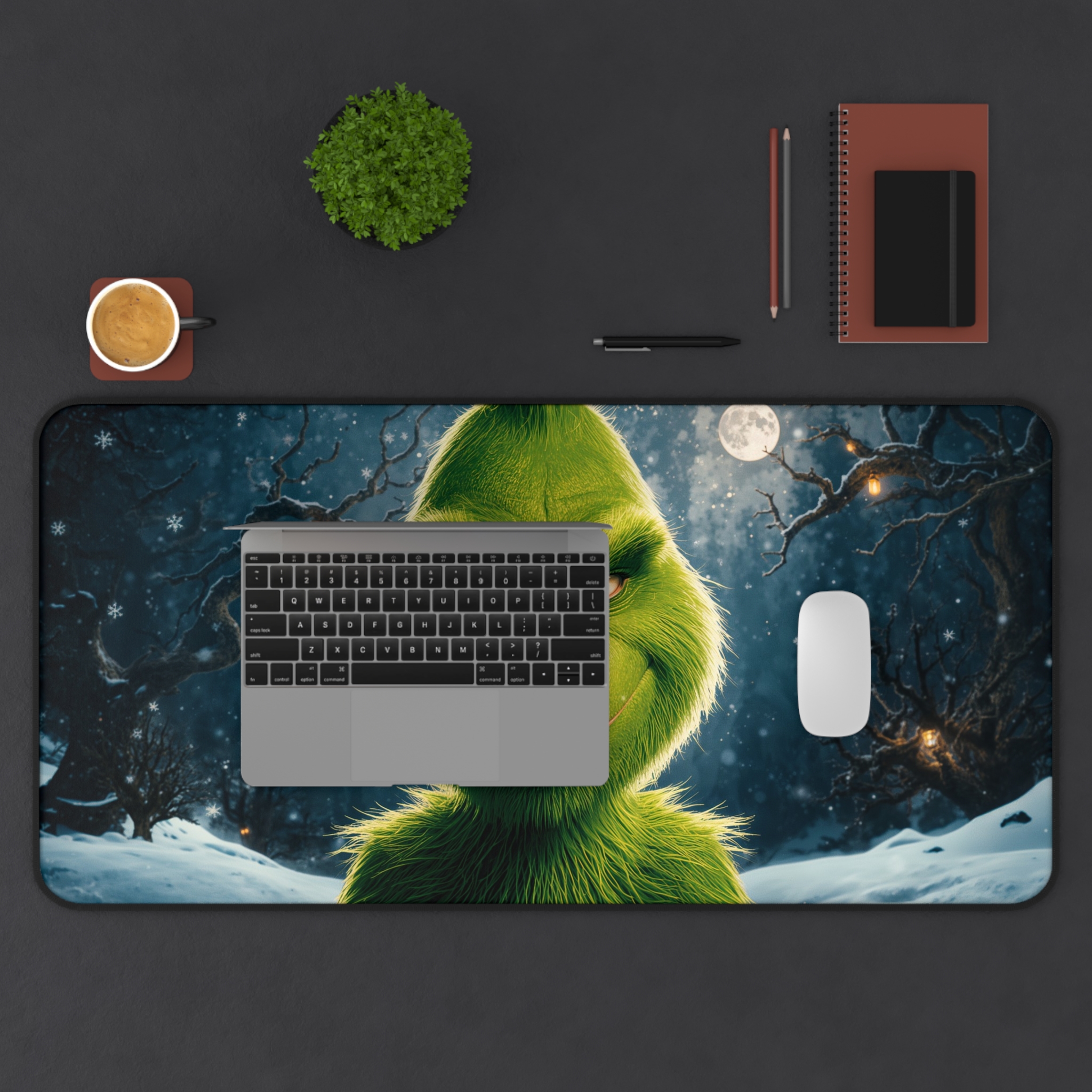 Whether you’re in a festive mood or have a heart “two sizes too small,” this XXL “The Grinch” Desk Mat is the perfect accessory to transform your workspace. Add a touch of mischief and vibrant color to your setup with the most famous grumpy character in Whoville.